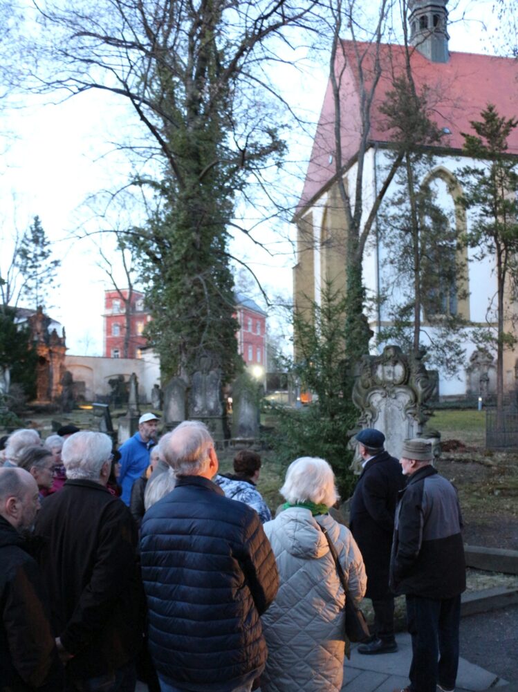 Der Abend bestand aus einer sachkundigen Führung über den Friedhof der Kreuzkirche durch Herrn Wabersich und einem gemütlichen Beisammensein mit Abendbrot im Gemeindesaal.