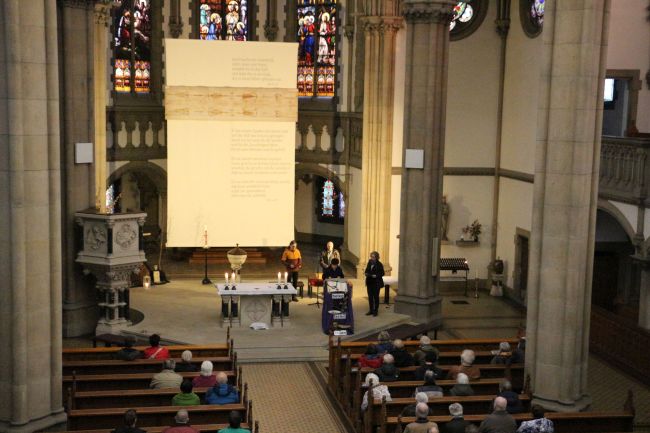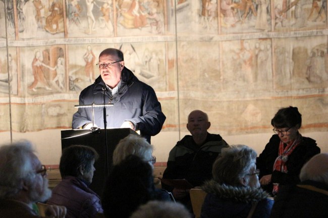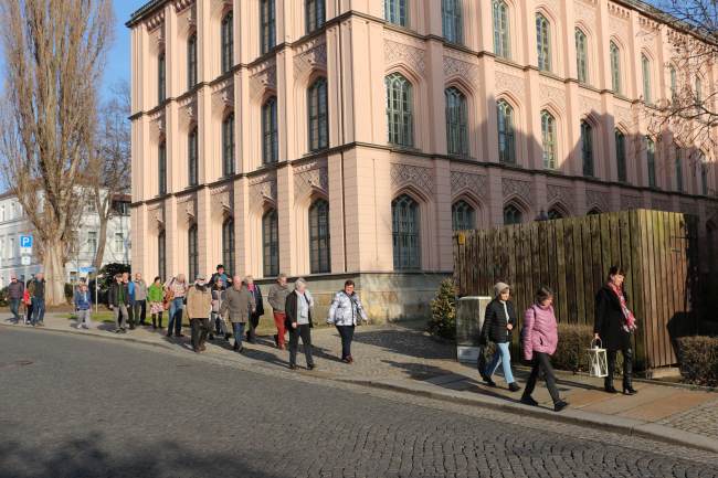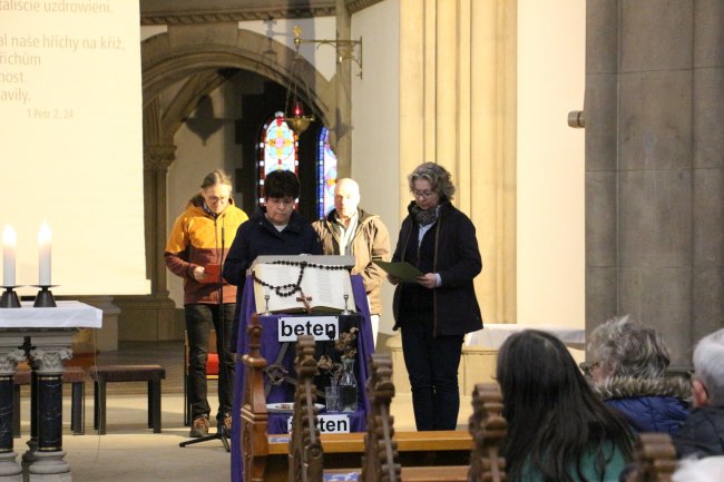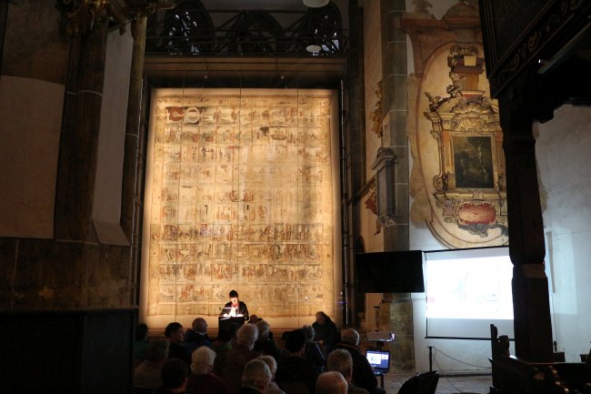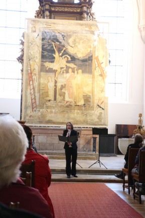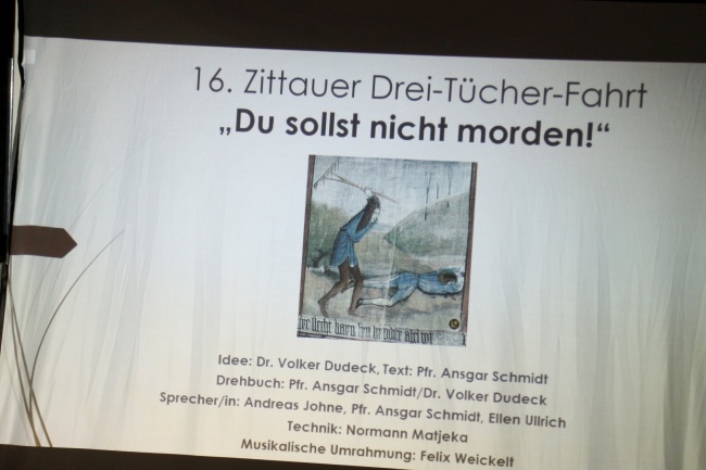 Der Verein Zittauer Fastentücher e.V., das Kulturhistorische Museum Franziskanerkloster, die Evangelisch-Lutherische Kirchgemeinde St. Johannis und die Römisch-Katholische Pfarrei St. Marien haben wieder zur Zittauer Dreitücherfahrt eingeladen. Der Weg ging von der Kreuzkirche (Großes Zittauer Fastentuch) zur Klosterkirche (Kopie des Kleinen Zittauer Fastentuchs) und endete in der Marienkirche (Fastentuch mit Kopie des Turiner Grabtuchs). In Anbetracht der Opfer des 2. Weltkrieges, und des Leids, welches Menschen durch die Kriege in der Ukraine und in Nahost erfahren, lautete das Thema: „Du sollst nicht morden!“ (2 Mose/Exodus 20,13). Vor den drei Tüchern gab es Betrachtungen, Gebet und musikalische Umrahmung.