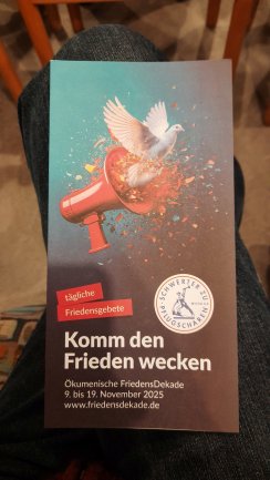 Die Friedensdekade von 9. bis 19. November 2025 stand diesmal unter dem Motto „Komm den Frieden wecken“. Heute wurde die Friedensandacht von unserer Zittauer Gemeinde gestaltet. Man ist sich mit vielen Gruppen und Gemeinden in ganz Deutschland verbunden.