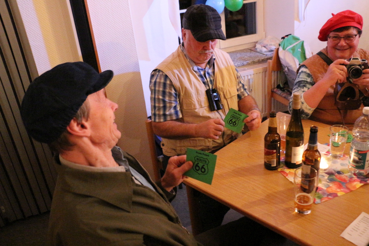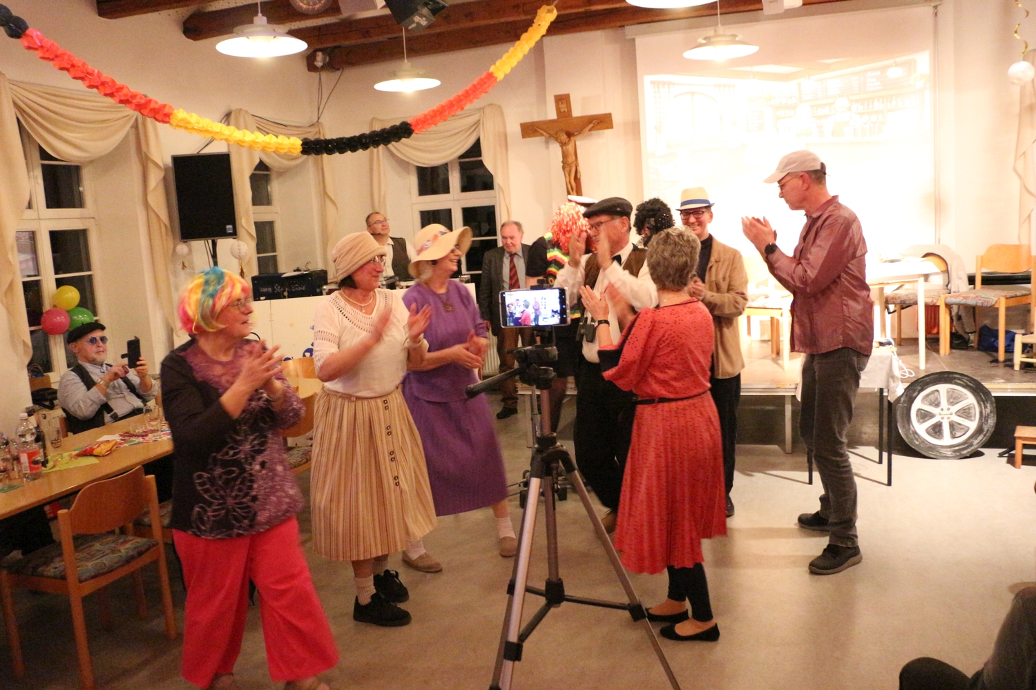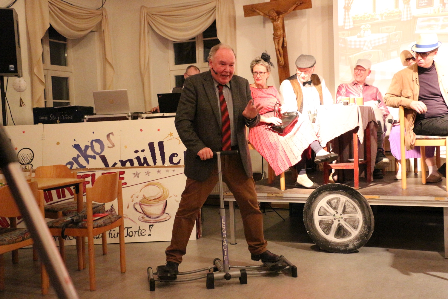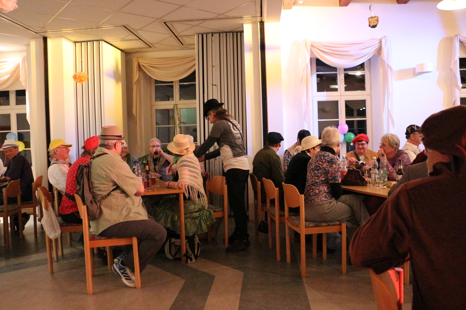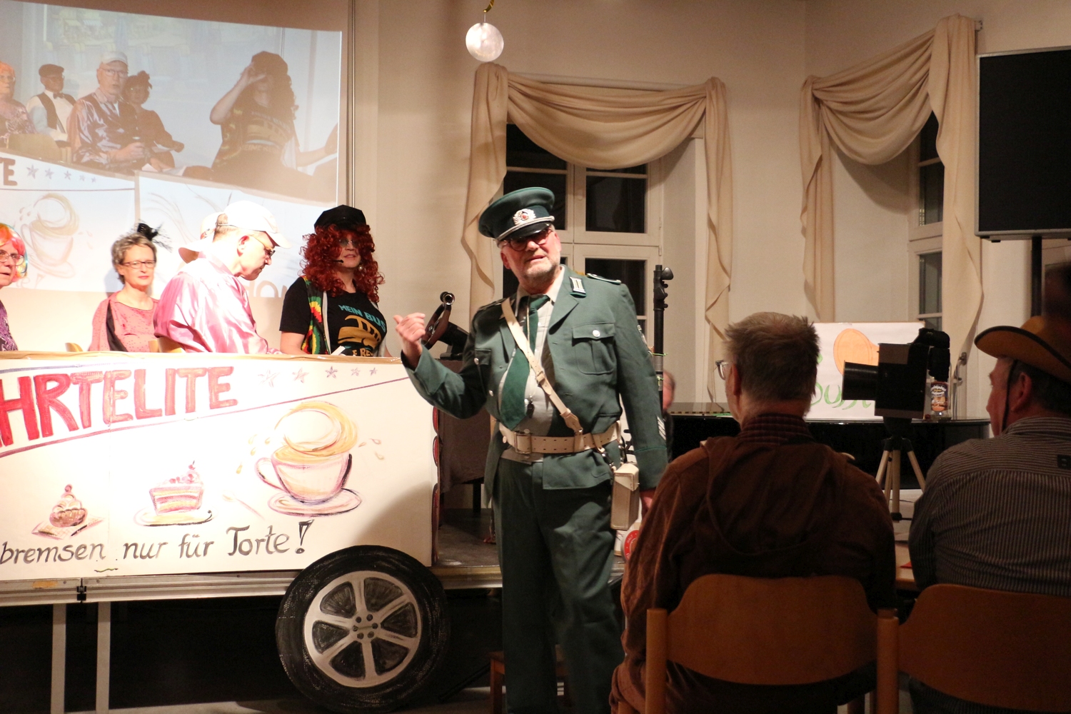 Pfarrer Cech verteilte Fahrkarten für die Kaffeefahrt. Diese entschieden erst, wer Vorrang am Büffet hatte. Dann wurde die Kaffeefahrt mit viel Klamauk großartig gespielt. Nach frohem Beisammensein mit Tanz endete der schöne Abend.