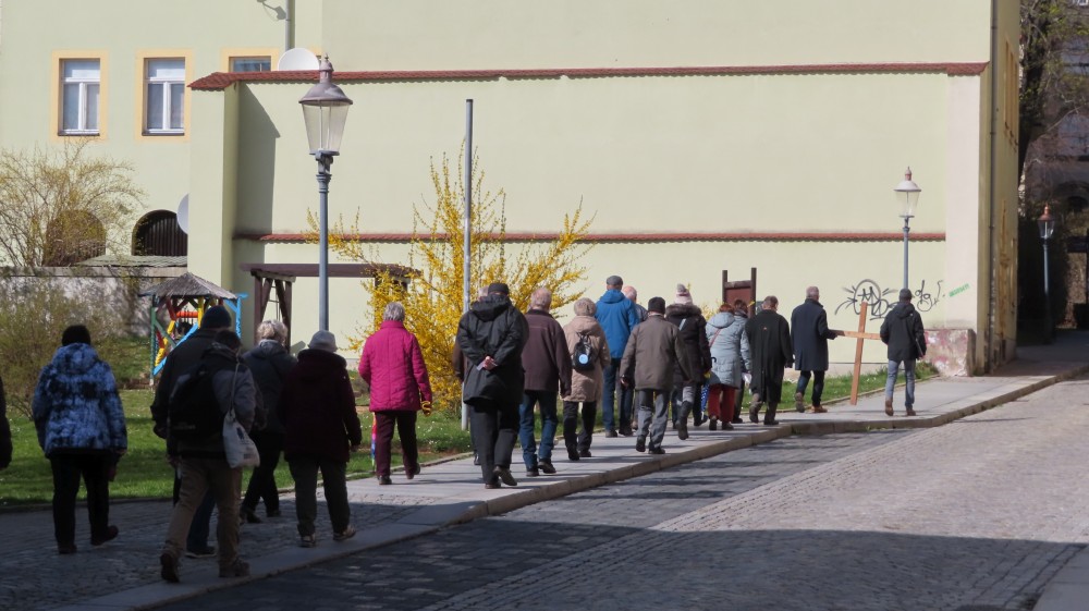 Auf dem 12 km langen Abschnitt des Zittauer Jakobswegs, geführt vom Hirschfelder Pilgerhäuslverein, gab es wieder geistliche Impulse, Schriftlesung, Gebete und Gesang. Betrachtet wurde der Bilderzyklus "Il ciclo diEmmaus" - "Die Emmausjünger" des französischen Künstlers Arcabas (Jean-Marie Pirot). Station zu Mittag war in Předměřice nad Jizerou bei der Jakobskirche mit der Statue des hl. Johannes Nepomuk.