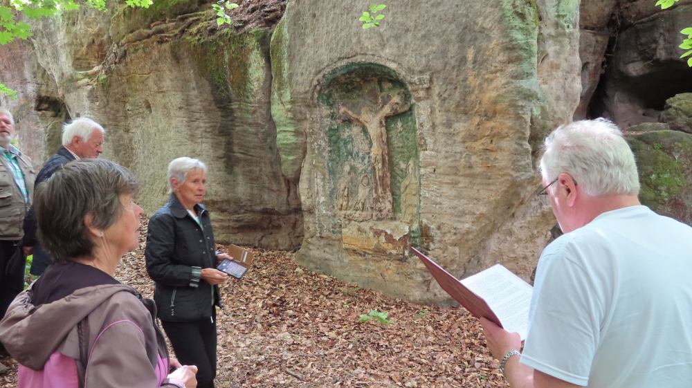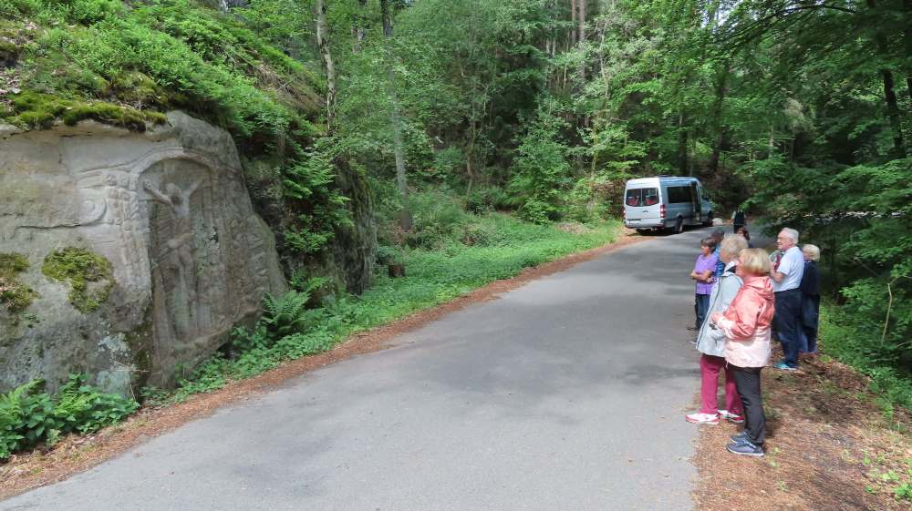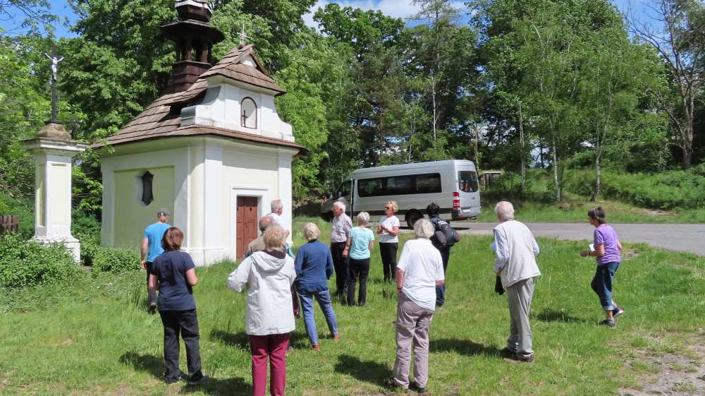 Die Busexkursion zu sakralen Kleindenkmalen vom Pilgerhäusl-Verein ging diesmal in die Daubaer Schweiz/Dubské Švýcarsko oder auch Kokořínsko. Zu bestaunen gibt es dort in hügeliger Landschaft Wegkreuze, Bildstöcke, Kapellen und Sandsteinreliefs. Neben drei kurzen Andachten gab es auch eine Mittagspause im Freien.