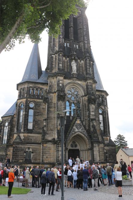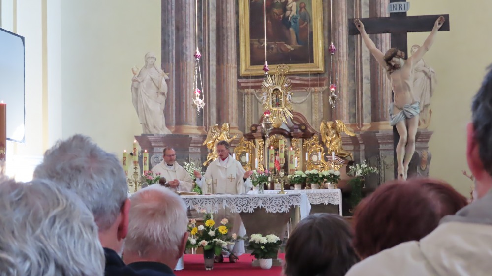 Für die Fußwallfahrt - immerhin 35 km! - waren zwei Zustoßmöglichkeiten für die restlichen 14 bzw. 7 km organisiert. Trotz des Regens zwischendurch sind die Fußgänger und die Radfahrer gut in Haindorf/Hejnice angekommen. In den kurzen Andachten unterwegs und in der Hl. Messe in der Basilika wurden die Bedrängnisse und die Kriege unserer Zeit besonders in den Blick genommen.