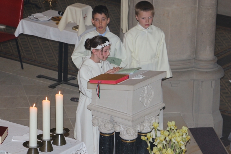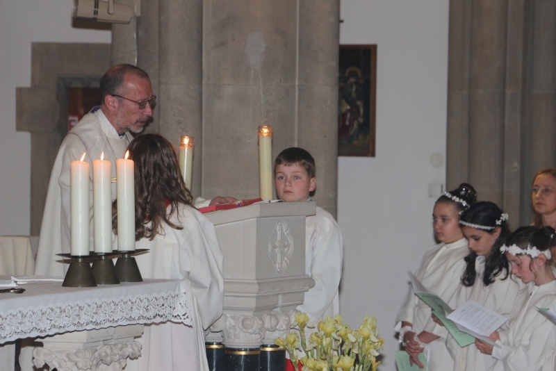 Während der Heiligen Messe übergab Bischof Heinrich Timmerevers die Gründungsurkunde der Pfarrei sowie die neuen Kirchenbücher und das Siegel.