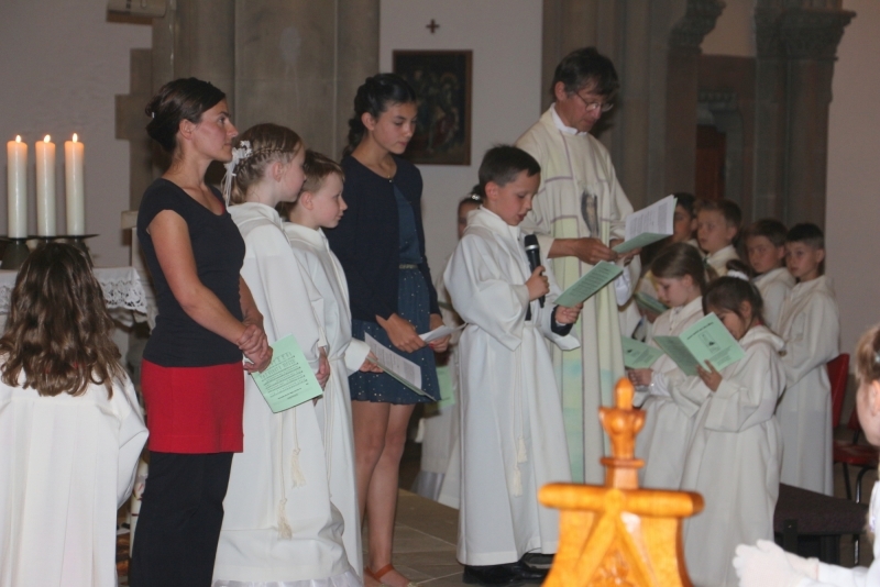 Kaum war der Kuchen am Tag der Pfarreigründung aufgegessen, begann für einige die RKW: Die Helfer aus Zittau brachen mit dem Fahrrad nach Ostritz auf. Sie konnten die leerstehende Pfarrerwohnung im evangelischen Gemeindehaus beziehen und hatten so ihre eigene kleine Jugendfahrt. Am Montagmorgen wurde das katholische Pfarrhaus dann richtig voll, denn über 26 Jugendliche und Erwachsene kamen zum Helferfrühstück zusammen und anschließend dann 55 Kinder aus den drei Gemeinden der Pfarrei, aus der evangelischen Kirchgemeinde Ostritz und Freunde. Die gesamte Gruppe traf sich aus Platz- und Wettergründen zunächst in der Kirche, ebenso zu Singerunde und Tagesabschluss. Von den Zittauer Helfern gestaltete Gruppenarbeiten füllten fast jeden freien Raum im Pfarrhaus. Deswegen waren wir froh, für das Mittagessen das evangelische Gemeindehaus nutzen zu können. Die Helfer aus Ostritz hatten mit Küche, Kreativangeboten und tausend kleinen Dingen alle Hände voll zu tun. Am Mittwoch wurde es dann noch bunter. Auf unserer Wanderung schlossen sich uns noch 15 polnische Kinder und Begleiter an. In Posada wurden die Stühle knapp, Suppe gab es aber reichlich. Ein kleines Abenteuer war der Rückweg über die Neiße per Schlauchboot. Den Donnerstag ließen wir mit einem Gottesdienst im Park und dem Familienfest im Freibad ausklingen. Nun gilt es, langsam an das kommende Jahr zu denken, denn wie die Mehrzahl der Ostritzer die RKW vor Ort nicht missen möchte, vermissten andere das auswärts Schlafen als gesamte Gruppe.