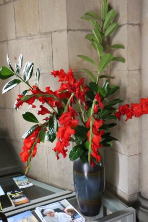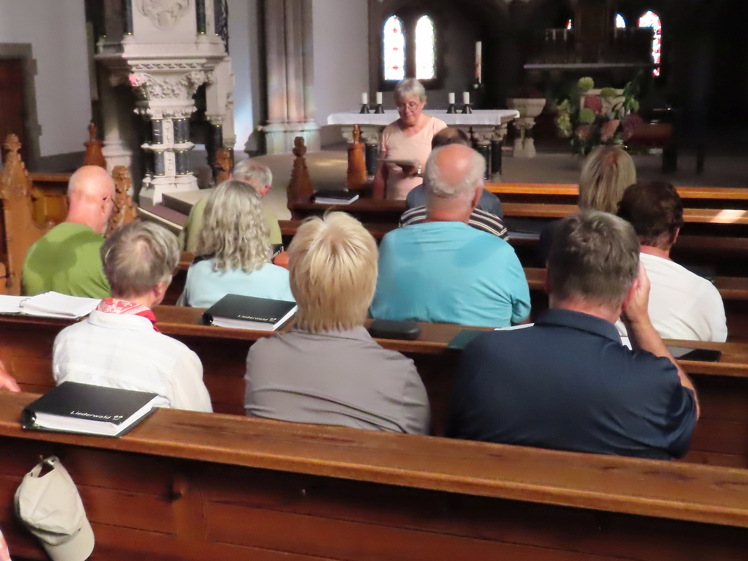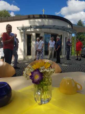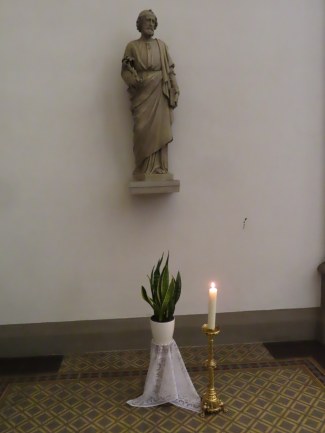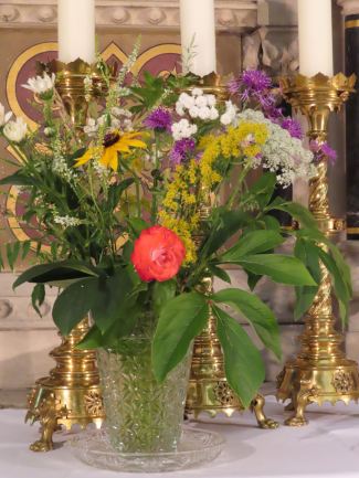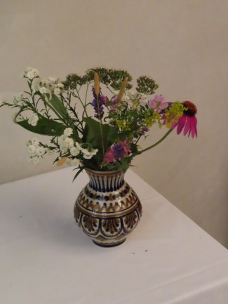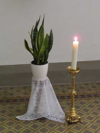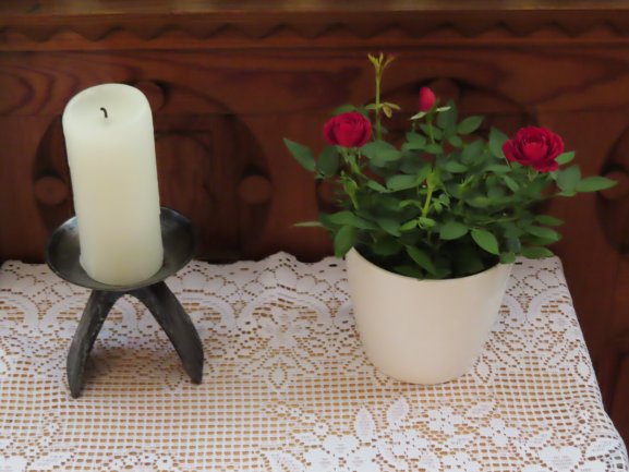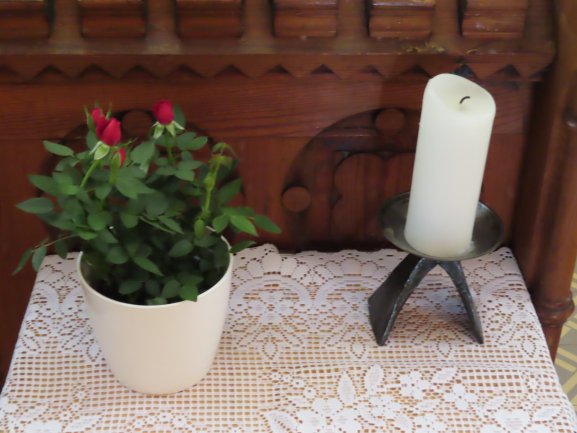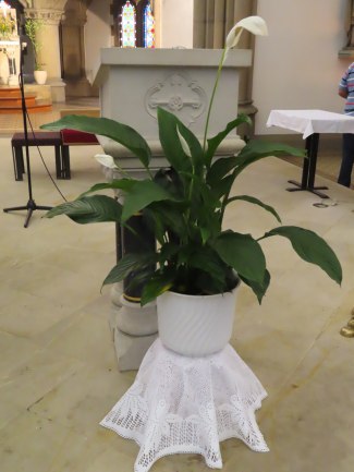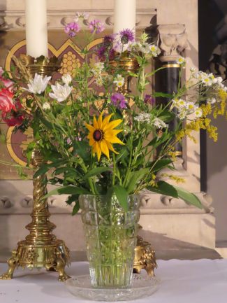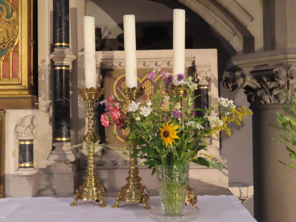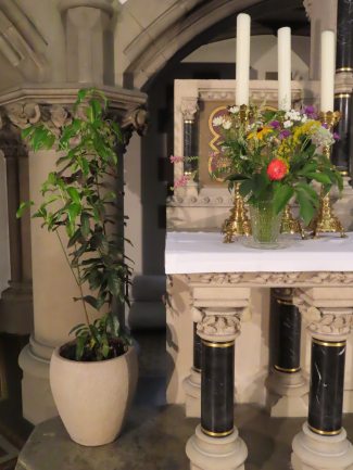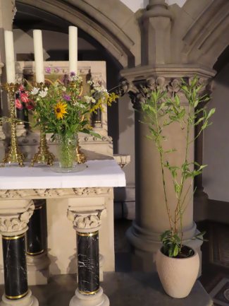 Ein fortwährender Arbeiseinsatz, der auch gewürdigt werden muss. Frau Pawluk und mehrere Helfer setzen sich dafür ein, dass immer wieder frische Blumen unsere Kirche schmücken, für uns und zur Ehre Gottes.