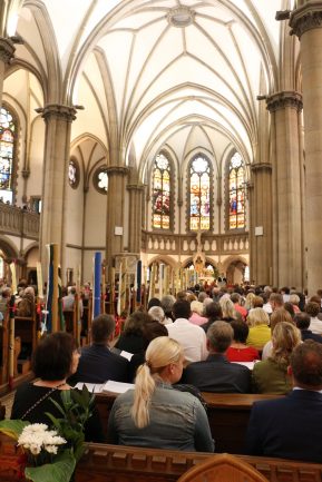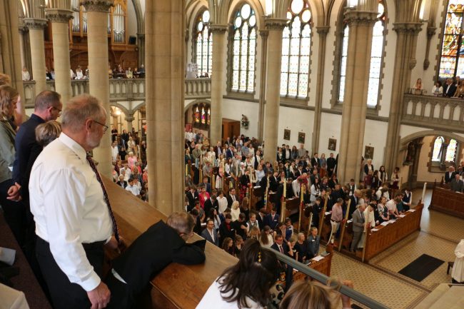 Wie passend, die Lesung aus dem Buch der Weisheit 9,13-19 zur Firmung am 6. September. 42 Firmbewerber aus der gesamten Pfarrei nahmen teil. Einer wurde von Freunden praktisch mitgebracht; Er wurde erst noch getauft und ging zur ersten Heiligen Kommunion.