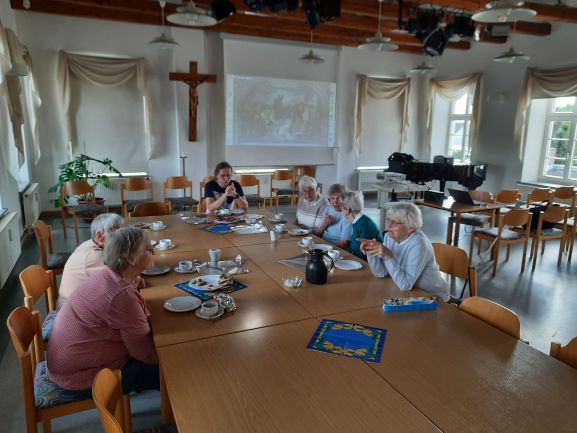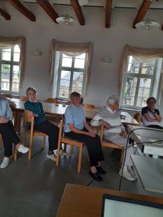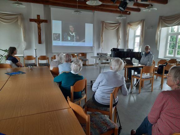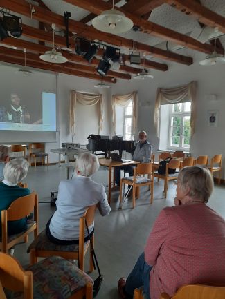 Wie immer zum Seniorenvormittag zuerst der Gottesdienst, danach ein schönes Frühstück und dann folgt immer irgendein Vortrag. Diesmal war es eine Musikvorführung mit Stücken der verschiedensten Richtungen: Klassik Rock, Schlager...