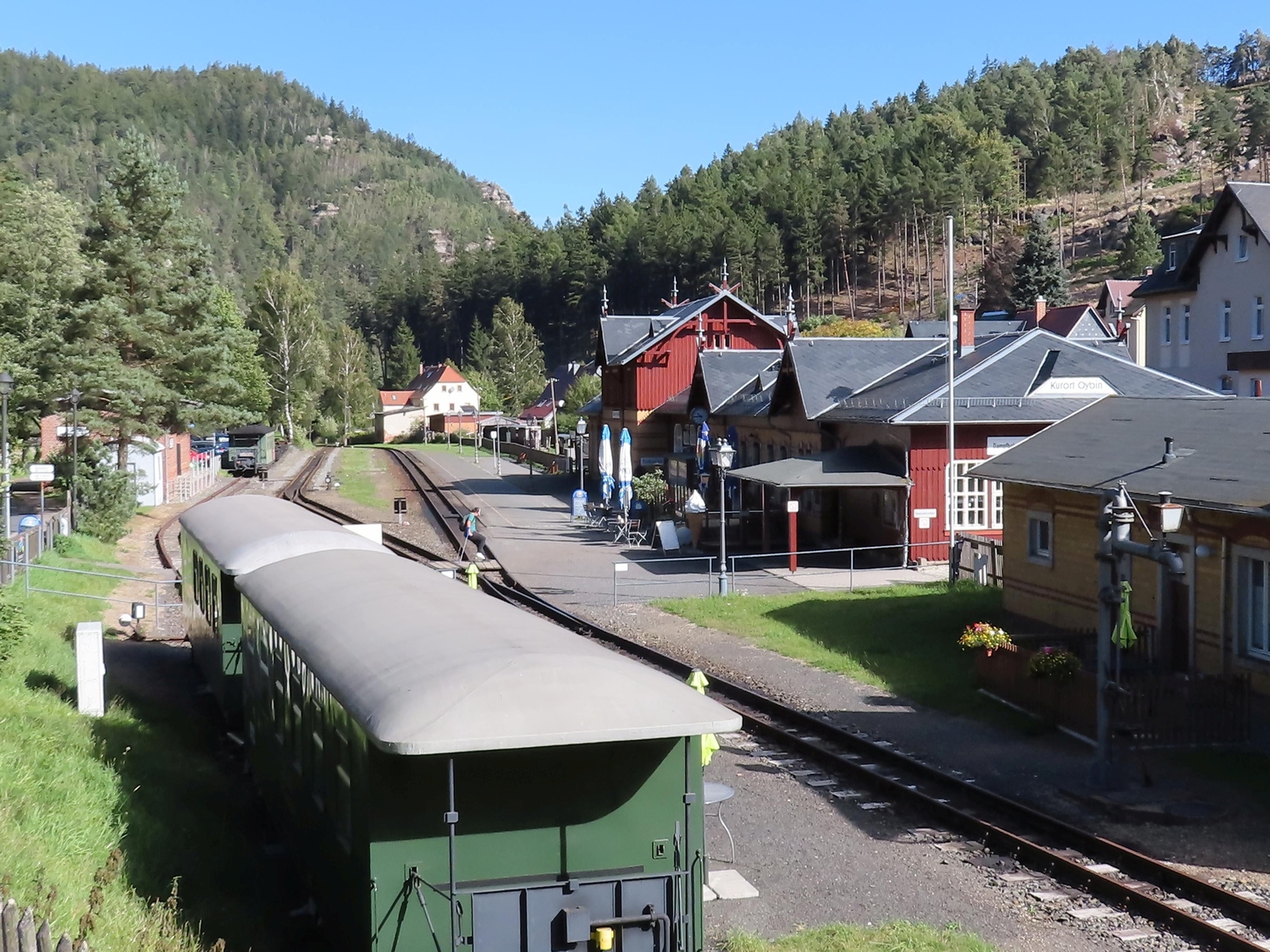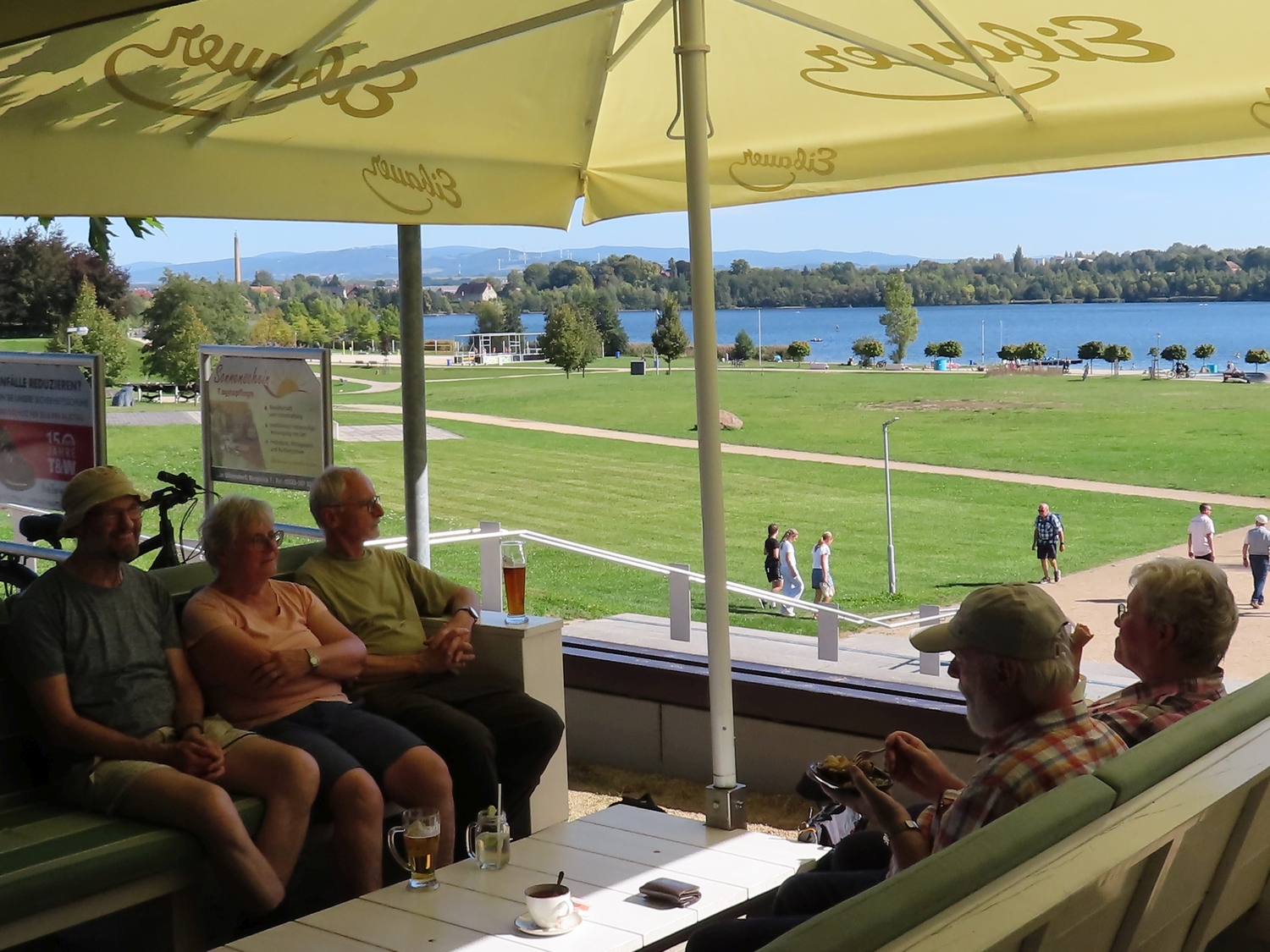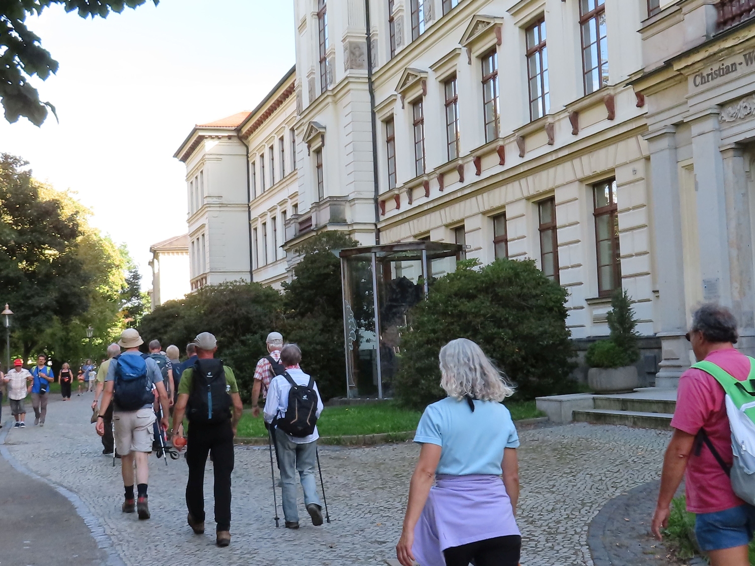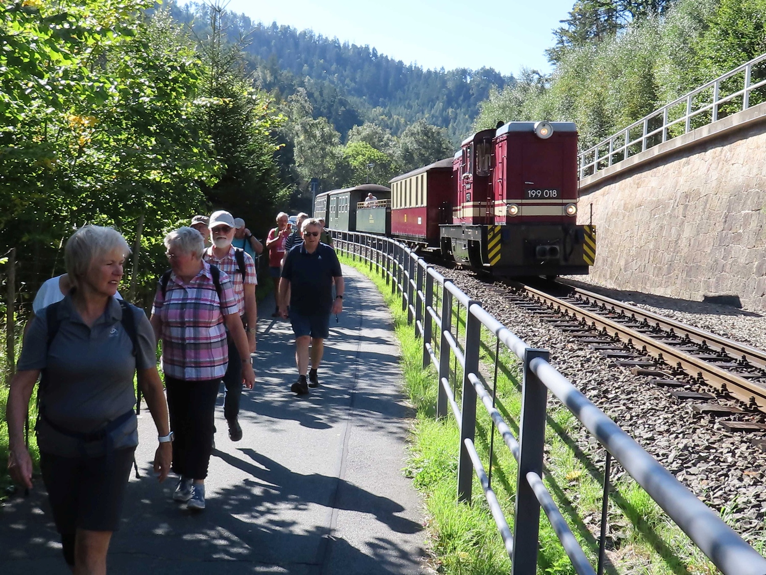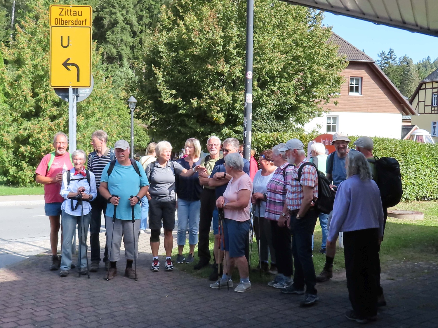 Mit dem Bus vom Bahnhof Zittau nach Oybin. Von dort bei bestem Wetter, guter Laune der 17 Leute und mit geistlicher Begleitung ein Weg um 11 km nach Zittau zur Kirche. Als ein schönes Wegstück mit etwas Anstrengung fand man die Überquerung der rekultivierten Abraumhalde des Braunkohletagebaus Olbersdorf. Pause und Erholng gab es dann bei Captain Hook.